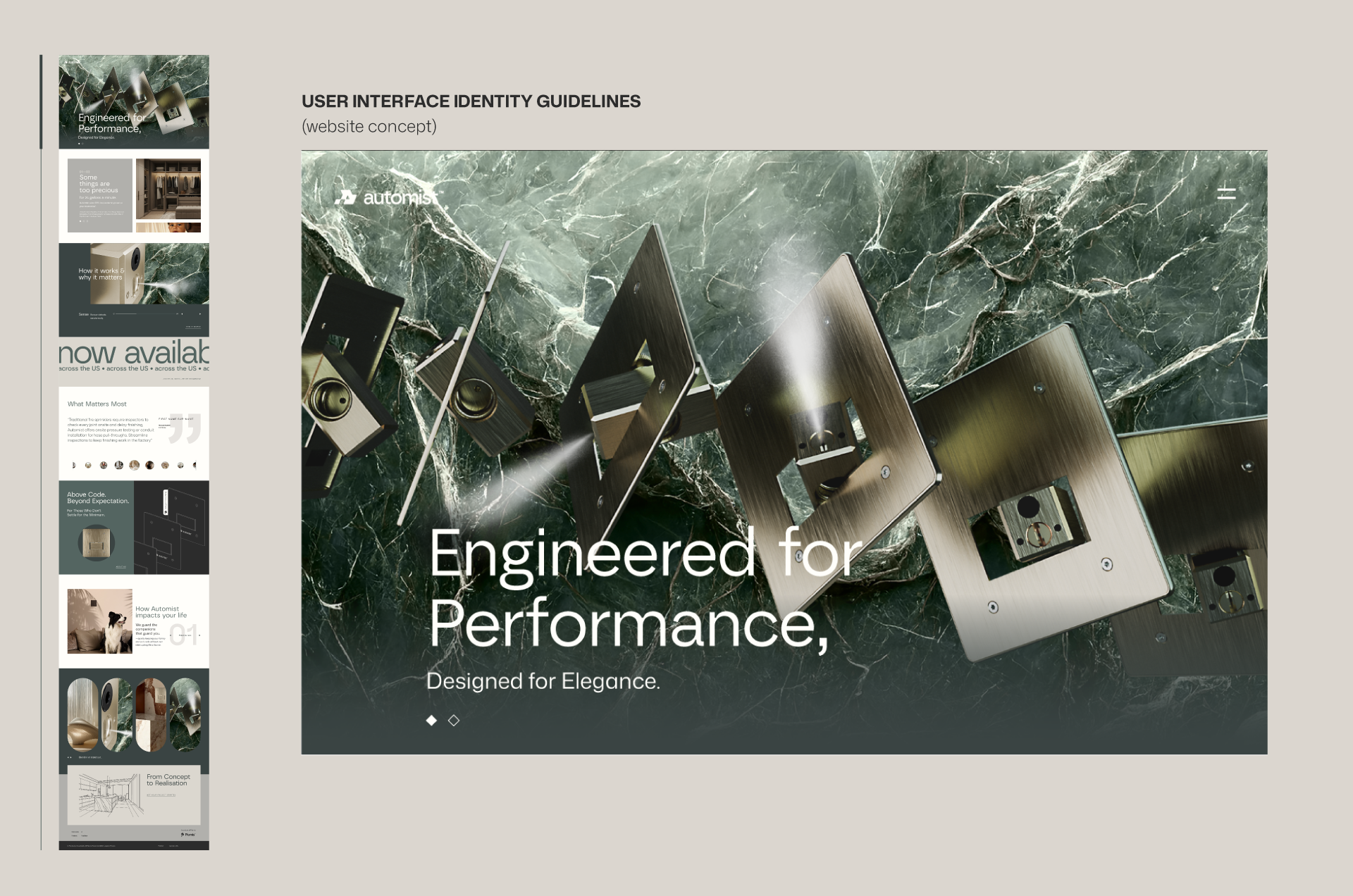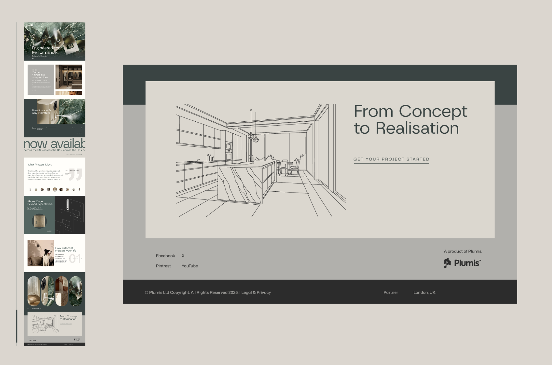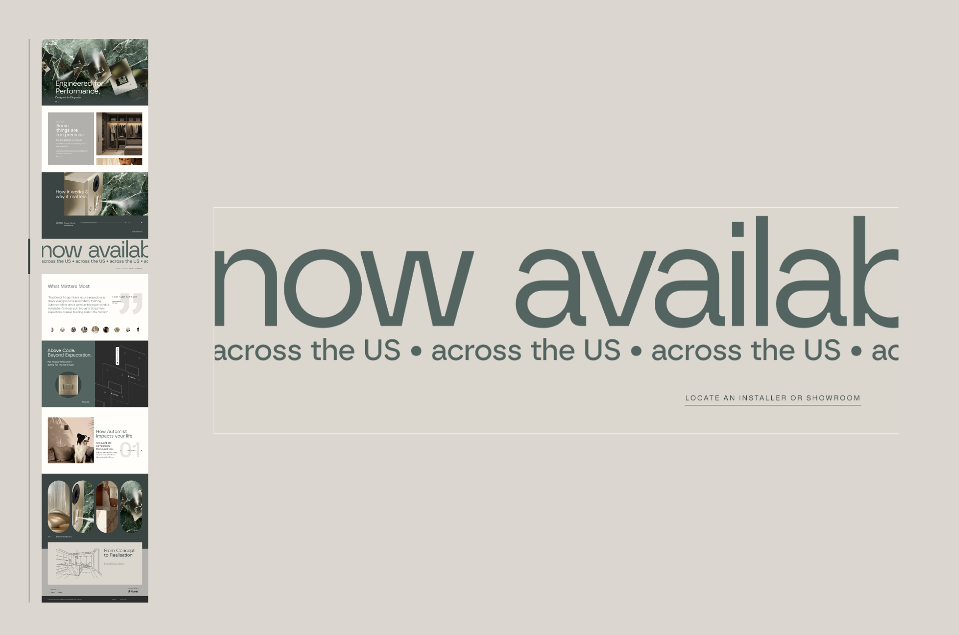 We created a unique art direction that balanced a tech-hardware aesthetic with opulence and luxury, deliberately moving away from typical tech blues and greys. Green was introduced to signal the product’s suitability for smart homes and its sustainable, water-saving capabilities, while marble was incorporated to evoke luxury and celebrate a purist, raw-material philosophy. The typeface was carefully selected to suggest technology while its rounded forms maintained a human, organic feel, avoiding a sterile or overly synthetic appearance.