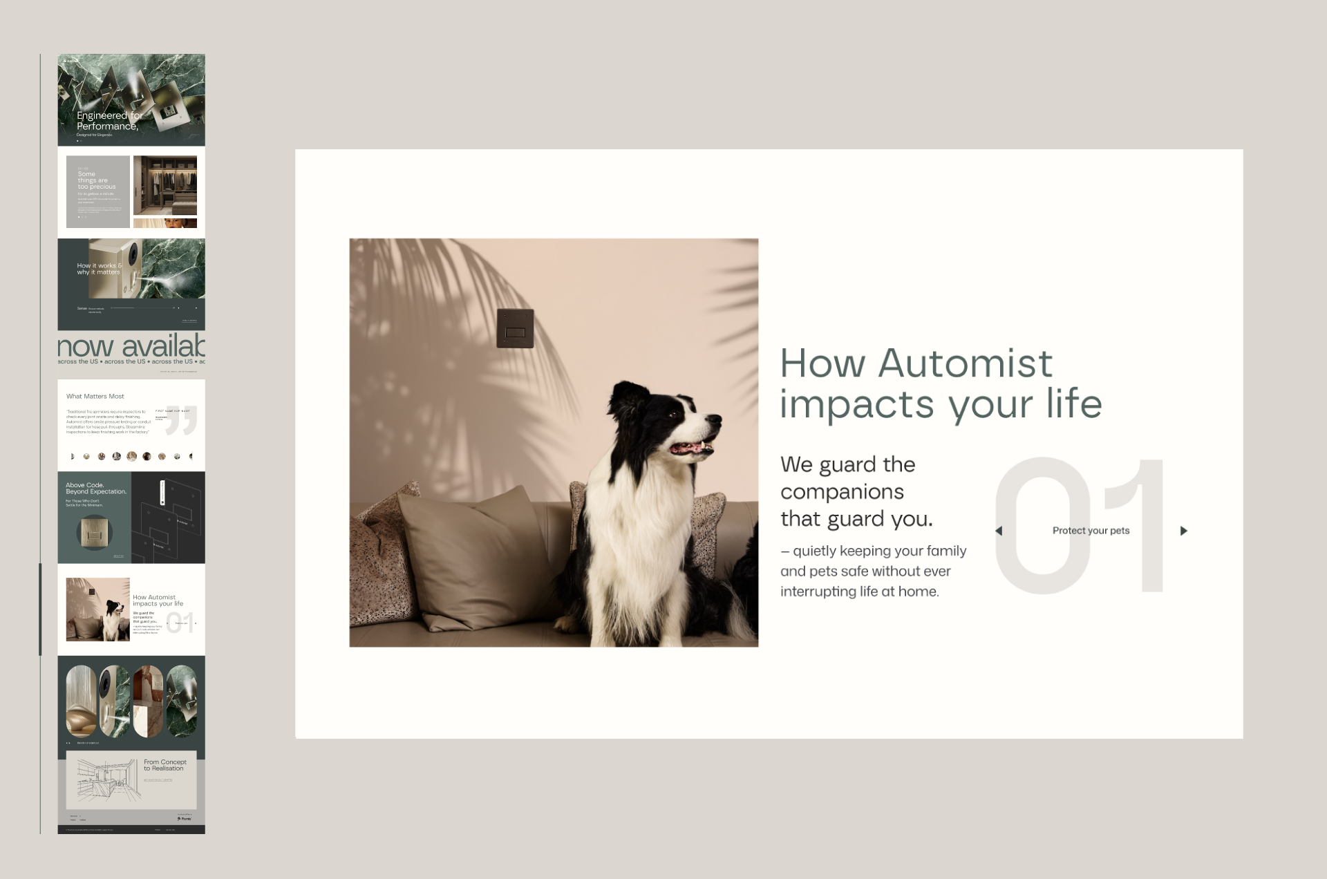 A deep dive into the customer profiles of ultra-high-net-worth individuals informed every aspect of the visual solution, ensuring the identity resonated with their values and high expectations. We shifted the brand positioning from a tech-gadget to a aspirational homeware product, making it suitable for tasteful, design-conscious homes while maintaining a sense of sophistication and exclusivity.